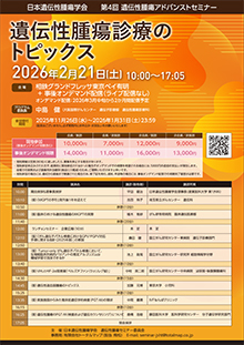 第4回遺伝性腫瘍アドバンストセミナーを下記にて開催予定となっております。
